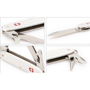 Швейцарский карманный армейский нож Victorinox Alox Pioneer -это универсальный набор инструментов с классическим дизайном. Он легкий и компактный и отлично помещается в сумке или кармане. Кроме того, нож Victorinox весьма практичен и содержит все основные инструменты для повседневной жизни. Нож изготовлен из высококачественной нержавеющей стали. Рукоять выполнена из нержавеющей стали c алюминиевым рифлением Alox и логотипом Victorinox. Размер – 93×12.5×23.5 мм. Вес – 77.4г.