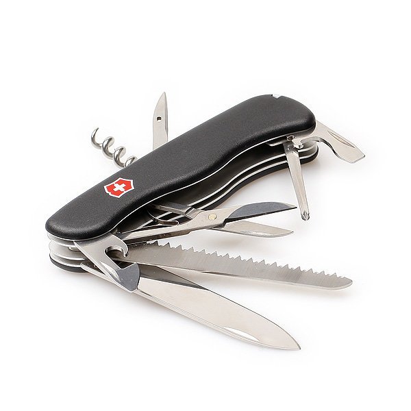 Выбор для тех, кому необходим базовый вариант ножа, с которым можно отправиться на пикник и в туристический поход, да и осуществить ремонт разной степени сложности. Швейцарский складной нож Victorinox OUTRIDER – модель, в свое время разработанная для военных. Длина изделия в сложенном состоянии – 11,1 см, вес – около 150 г.