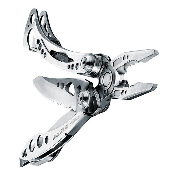 Ніж прямий + серрейтор (сталь 154см) відкривається однією рукою, бітотримач, 4 Викрутки, кусачки, пасатижі, відкривачка для пляшок, карабін, кліпса. Всі опції фіксуються від випадкового закриття або випадання. Покриття рукояток з абразивостійкого карбіду вольфраму (Tungsten ЦДО). Тільки найнеобхідніше. Взагалі кажучи, Мультитули з безліччю опцій, часто бувають досить-таки важкі. Та й далеко не всі їх опції використовуються постійно. З іншого боку, Складні ножі легкі і компактні, але в них часто не вистачає, наприклад, плоскогубців або викруток, що б що-небудь підкрутити. Тому в Leatherman створили Скелетул: мінімальна вага, компактні розміри, безмежні можливості. Впевнені – ви його оціните.