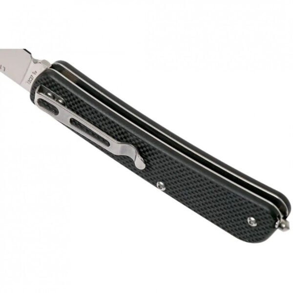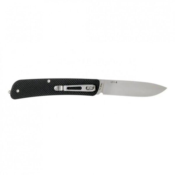 Накладки на рукоять виготовлені з зносостійкого полімерного матеріалу G10, який славиться своєю міцністю і довговічністю. А завдяки фактурної поверхні і ергономічною формою рукояті, модель L11 зручно утримувати практично будь хватом. В асортименті нашого інтернет-магазину представлено 3 варіації даного ножа: з чорними, коричневими і темно-зеленими накладками на рукоять.