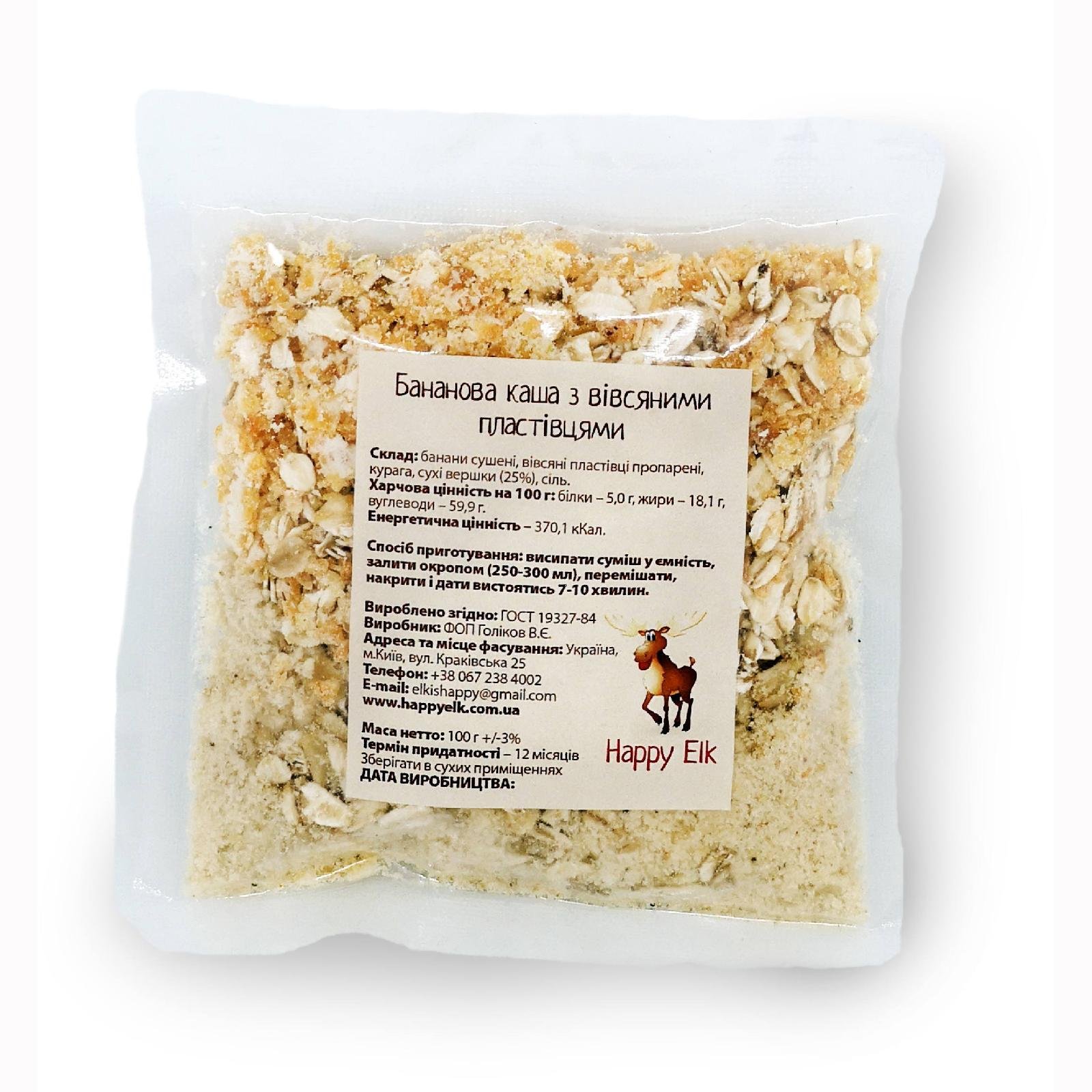 Бананова каша Happy Elk прозора упаковка