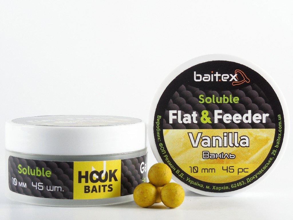 Бойли Baitex пилящі Flat & Feeder Vanilla 10 мм (45 шт)
