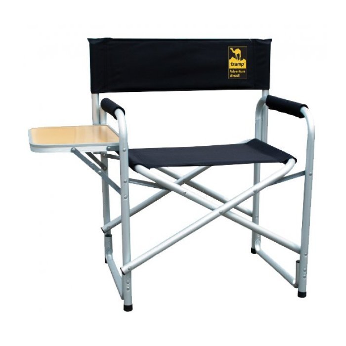 Директорський стілець із столом досить легко і зручно складається, що дає йому ряд переваг – це мобільність, компактність і комфорт. Опорна конструкція зібрана на міцних алюмінієвих трубах, діаметр яких становить 25 мм, а їх товщина – 1,2 мм. В якості тканинної основи використовується двошаровий матеріал – oxford, щільністю 600D. До того ж, для зручності експлуатації обраний не мазкий чорний колір. На спинку стільця нанесений логотип фірми-виробника. В комплект входить складаний столик.