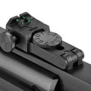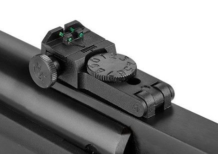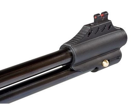 Прицельные приспособления открытого типа с фибероптическими нитями (Truglo fiber optics). Внизу корпуса мушки есть ригель для фиксации подствольного рычага взведения.