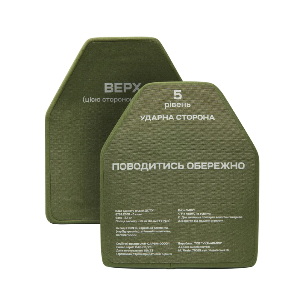 Надміцні та неймовірно легкі у своєму класі, ергономічно зручні бронеплити захистять від ураження уламками різної величини, хвиль вибухів та рикошетів (також вторинних уражаючих елементів на кшталт бетону, скла тощо), пострілу кулі 7,62 х 39 мм. БЗ; 7,62 х 54 мм. ЛПС та усіх куль нижчого класу (якщо простими словами, то вони витримують постріл із АК, AR та навіть із кулемета).