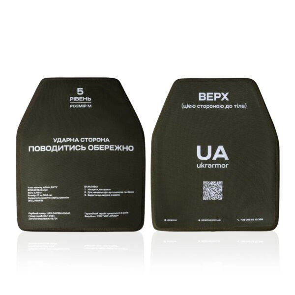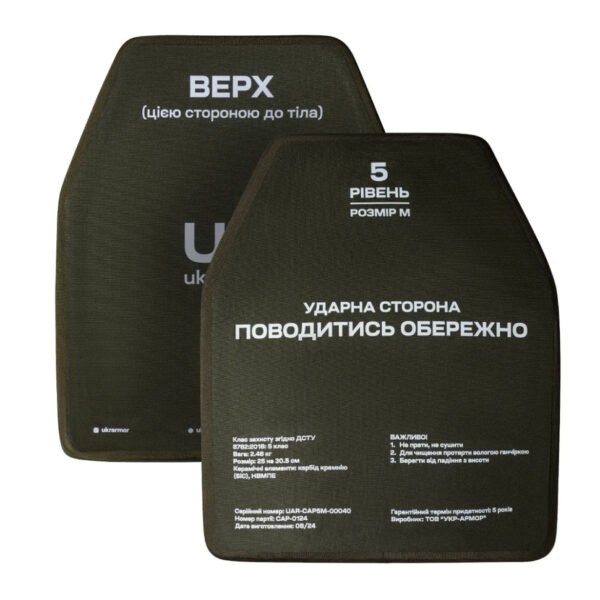 Додаткова інформація зазначена на бронеплитах (з ударної сторони): дата виготовлення, серійний номер, гарантійний термін та виробник – Ukrarmor.