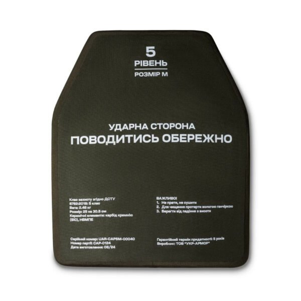 Опис Комплект бронеплит керамічних Ukrarmor 5 класу. Вага 4.96 кг. Розмір М (25х30.5 см)
