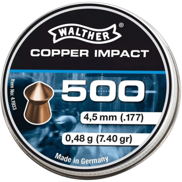 Кулі пневматичні Umarex Walther Pointed Waisted Pellets 0,48г 4,5мм 500шт – це гострі кулі Walther від компанії Umarex вагою 0.48 гр. З мідним покриттям.
