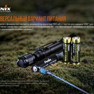- Необхідно згадати, що ці параметри роботи ліхтаря вдалося отримати в ході здійснення лабораторних дослідів. Де був використаний фірмовий акумулятор Fenix ARB-L14-1100u і два лужних акумулятора Pairdeer AA при температурі 21+-3 градуси Цельсія і вологості 50% -80%. Фактичні показники світіння ліхтаря залежать від умов навколишнього середовища, а також від того, які елементи живлення застосовуються.