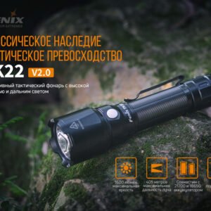 Ліхтар Fenix TK22 V2.0 може бути використано в туристичних походах, на вилазках, в поїздках і подорожах. Дана модель підходить для полювання, експедицій та екстремального відпочинку. Пристрій володіє надійним корпусом, що складається з алюмінію А6061-Т6. В якості елемента живлення використовується акумулятор 21700 Li-ion. Також допускається застосування акумулятора 18650 Li-ion разом з перехідником ALF-18. Загальна кількість режимів – 5.