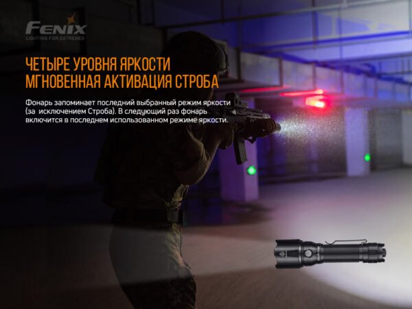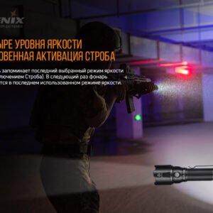 Інструкція: для включення/вимикання ліхтаря потрібно злегка натиснути на тактичну кнопку. Якщо її відпустити, освітлювальний прилад згасне. Повним натисненням до клацання модель включається на тривалий час. Потім необхідно до клацання натиснути на кнопку, щоб вимкнути прилад. При включеному примірнику натисніть функціональну кнопку, щоб вибрати необхідний режим. Коли освітлювальний пристрій знаходиться у включеному стані, натисканням та утриманням функціональної кнопки протягом 0,8 секунди можна увійти в режим «Строб». Повернутися в основні режими допомагає повторне натискання на кнопку.