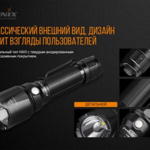 | Комплектація | Ліхтар, кліпса, чохол, ремінець на руку, запасне гумове кільце, перехідник ALF-18, гарантійний талон, інструкція | ||||