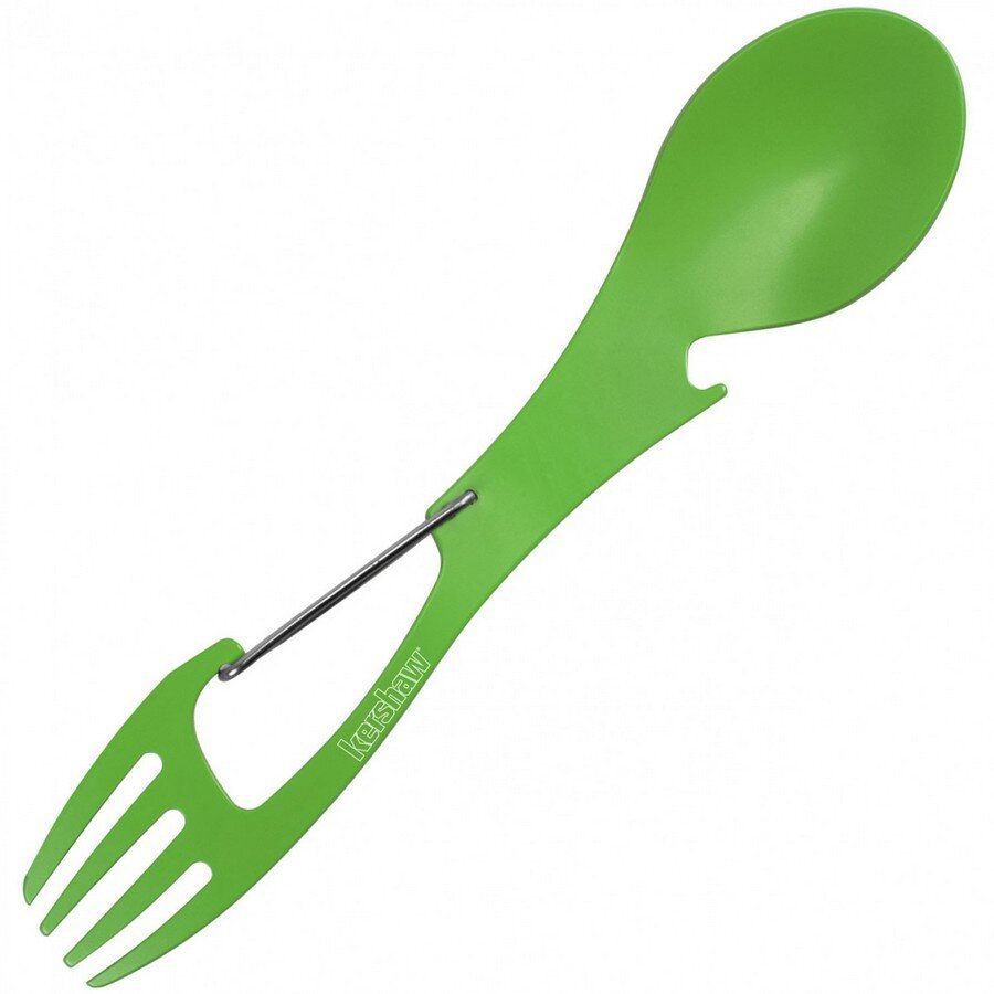 Ловиделка Kershaw ration є незамінним інструментом для туристів, мандрівників і всіх, хто практикує готування на свіжому повітрі. Цей компактний столовий прилад поєднав у собі виделку, ложку, відкривачку для пляшок і карабінне кріплення, вмістивши все це в розмір брелока. Kershaw Ration виготовлений з нержавіючої сталі з довговічним фінішним покриттям зеленого кольору.