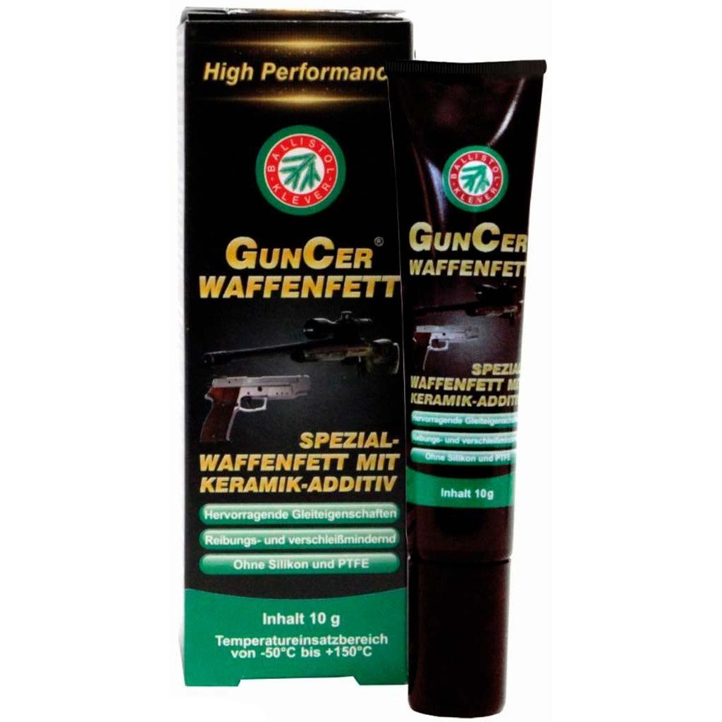 Збройова мастило GunCer завдяки додаванню спеціальної керамічної присадки і широкому температурному діапазону застосування (від-50°С до +150°С) гарантує максимальний захист оброблених деталей від зносу і корозії. Для змащення всіх ковзних з’єднань, наприклад, напрямні затвора, ролики спускового гачка, стопори, бойові виступи, Шарнірні болти, а також в якості допоміжного засобу для монтажу різьбових і штифтових з’єднань. Також ідеально підходить в якості монтажної пасти для установки змінних чоків. Володіє нейтральною дією на пластик, лак, дерево і вороноване покриття. Біла спеціальна мастило з нейтральним запахом не містить смоли і кислоти, а також тефлону і силікону. Керамічна присадка гарантує антифрикційні властивості. Дуже хороші адгезійні характеристики без злипання або затвердіння!
