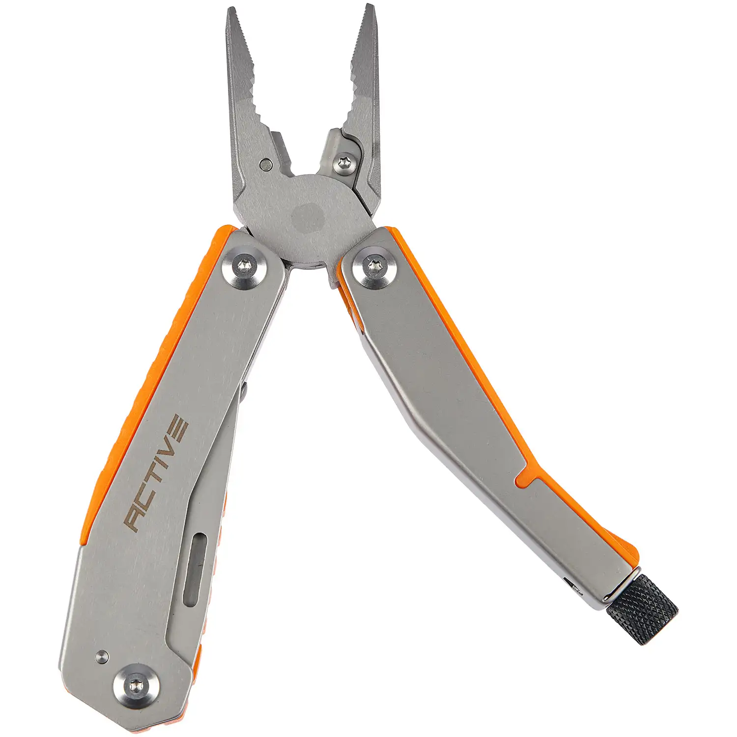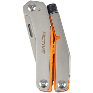 Active Basic – це багатофункціональний інструмент, який стане у нагоді, як у повсякденному житті, так і під час відпочинку на природі чи кемпінгу. Мультитул виготовлений із нержавіючої сталі та має яскраві помаранчеві пластикові вставки, що виділяє його серед іншого спорядження та мінімізує ймовірність втратити. Active Basic має такі інструменти як: пружні плоскогубці з кусачками, ніж зі звичайною ріжучою кромкою, а також дві біти з фігурною та плоскою викрутками. Крім цього, на мультитулі встановлено кишенькову кліпсу. Комплектується Active Basic нейлоновим чохлом.