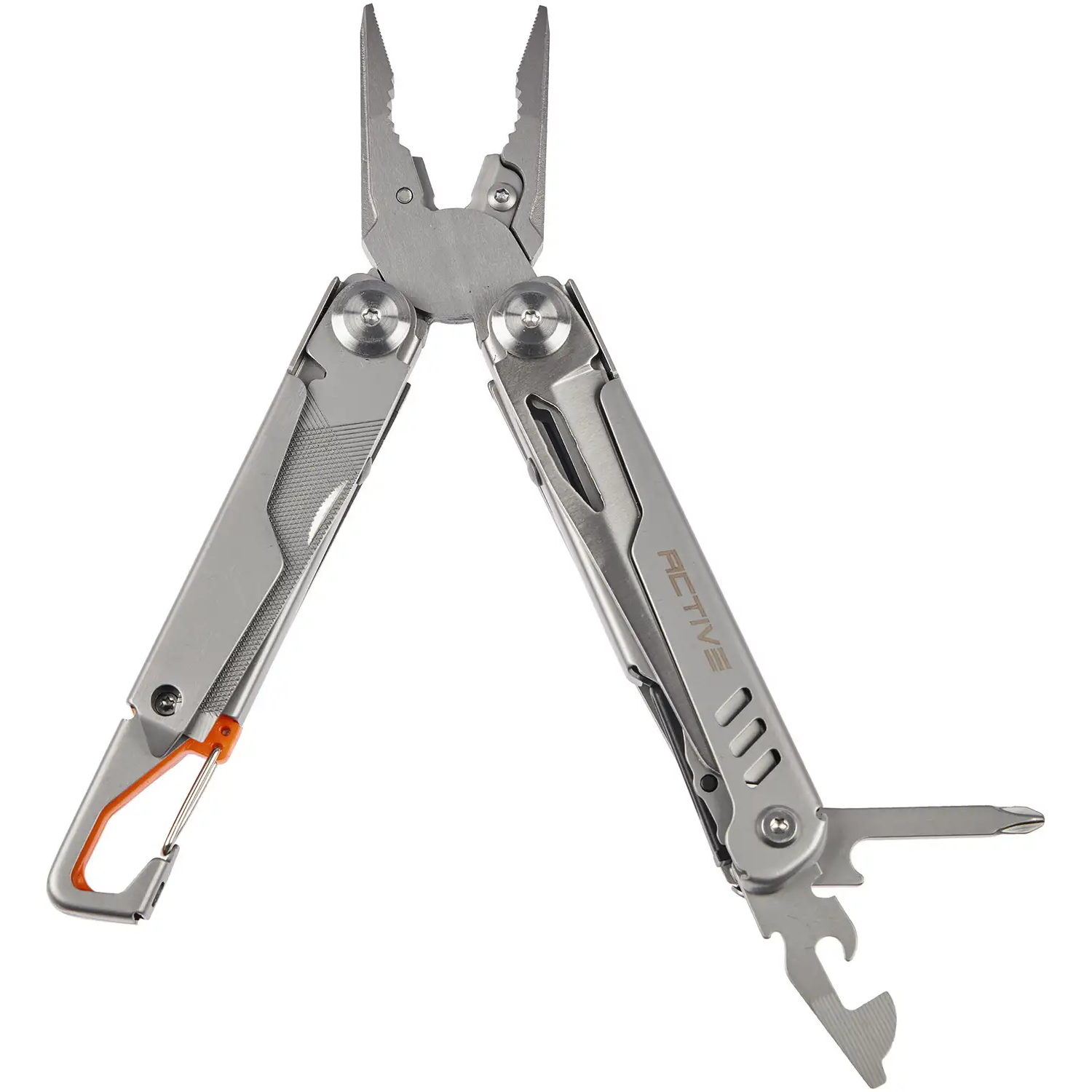 Мультинструмент Active Launch 3 має пружні плоскогубці, а також карабін, який дозволяє чіпляти мультитул на рюкзак або кріпити до спорядження. Комплектується нейлоновим чохлом.