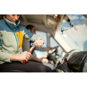 Якщо вам потрібні універсальні плоскогубці, відкривачка для пляшок, складний ніж або гострогубці, зверніть увагу на цей мультиінструмент від Leatherman. Всі ці прилади є в цьому комплекті і готові до використання. Якісний сталевий ніж впорається навіть з товстим канатом, а міцні кліщі стануть у нагоді в різних обставинах. Карабін виконує функцію відкривалки для пляшок і дозволяє кріпити прилад до спорядження, страхового троса або пояса. Ви можете детальніше прочитати про всі функції мультитула в нашому огляді Leatherman Skeletool.
