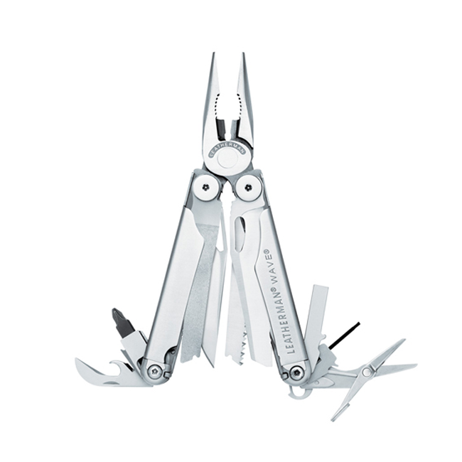 Оновлений варіант класичної моделі Wave від знаменитої американської компанії Leatherman. Модель має багатий комплект інструментів, який здатний задовольнити найвибагливішого користувача. У комплект інструментів мультитула Wave входять: плоскогубці зі звичайними і потужними кусачками, два леза (одне з серрейторной заточуванням), пила по дереву, 3 напилка (алмазний, по дереву, по металу), потужна шліцьова викрутка, інструмент для зачистки електропроводів, два адаптера для біт, ножиці, лінійка, консервний ніж, відкривачка для пляшок, кільце для темляка.