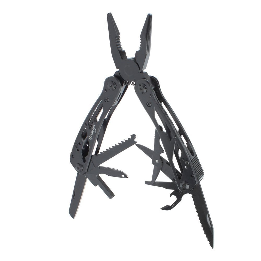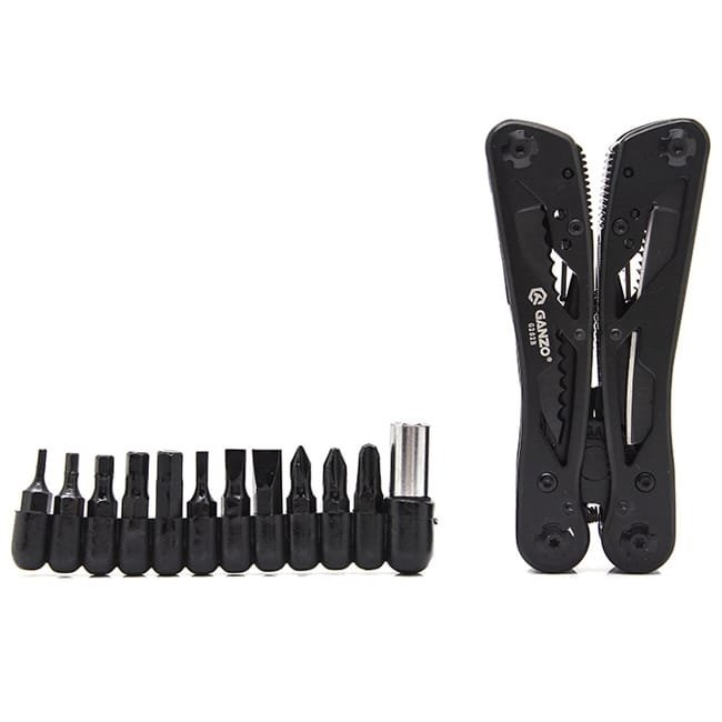 | Кількість функцій | плоскогубці, кусачки, маленька викрутка плоска, ніж, серрейтор, консервний ніж, відкривачка для пляшок, для зняття ізоляції, пила, захоплення для гайок і циліндрів, ножиці, шило, тримач біт, 12 змінних насадок в комплекті |