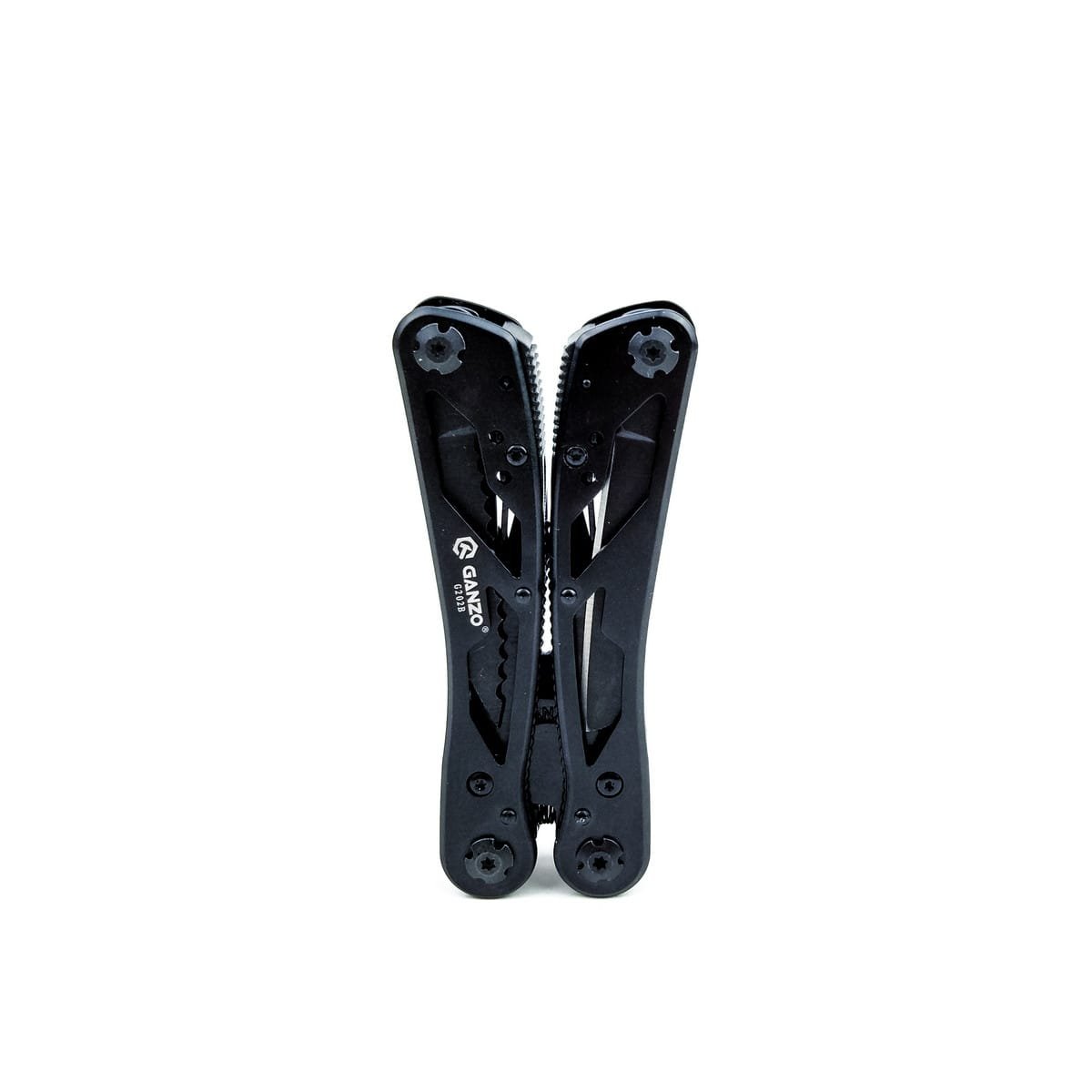 Стильний мультитул G202B від компанії Ganzo. Модель має продуманий дизайн і великий набір інструментів. У комплект входять наступні предмети: підпружинені плоскогубці з кусачками, два леза, одне з яких має серейторну заточку, плоска викрутка невеликого розміру, ножиці, ножівка по дереву, зенкування, подовжувач адаптера для біт відкривачки для пляшок і консервів.