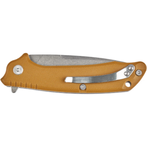 Накладки на рукоятку виконані зі склотекстоліту G-10. Є отвір для темляка, а також сталева кліпса для перенесення ножа в положенні Tip-up.
