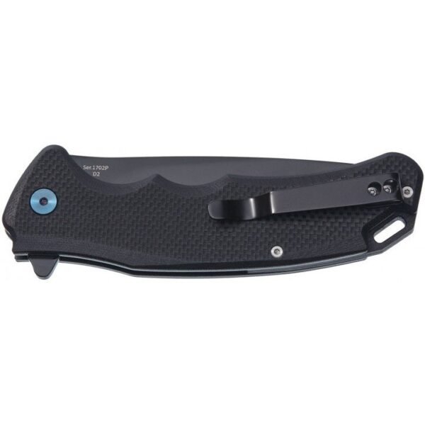 Така форма клинка вважається оптимальною, так як забезпечує ножу більш широкий спектр використання. Шарикопідшипниковий механізм гарантує легке вилучення клинка, а замок типу Liner Lock дозволяє надійно зафіксувати його.