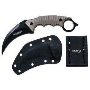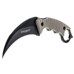Керамбіт Бокер Магнум Спайк Керамбіт – ніж з зігнутим фіксованим клинком і заточуванням по увігнутій стороні, службовець для нанесення січних ударів. Клинок виготовлений з нержавіючої сталі 440А. Рукоять з текстурованими накладками із зносостійкого склотекстоліту G-10 має зручні подпальцевие виїмки для більш надійного хвата.