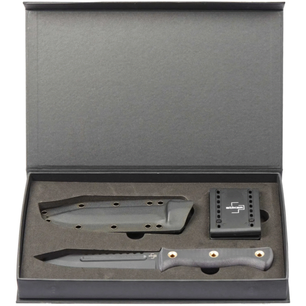Ніж Boker Plus Pilot Knife – тактичний ніж для активної експлуатації в польових умовах від дизайнера Дейва Венгера. Клинок профілю Spear Point виготовлений із високоміцної сталі D2. Фініш – чорне порошкове покриття, що забезпечує довговічність та захист від корозії. На обусі розміщена пилка для розрізання мотузок або сіток. Руків’я має покриття з міцного G10 для кращого хвату навіть у вологому середовищі. Декоративні латунні заклепки сприяють зниженню ваги, а також можуть використовуватися як отвір для темляка. Поставляється з піхвами з кайдекса з адаптером для ременя