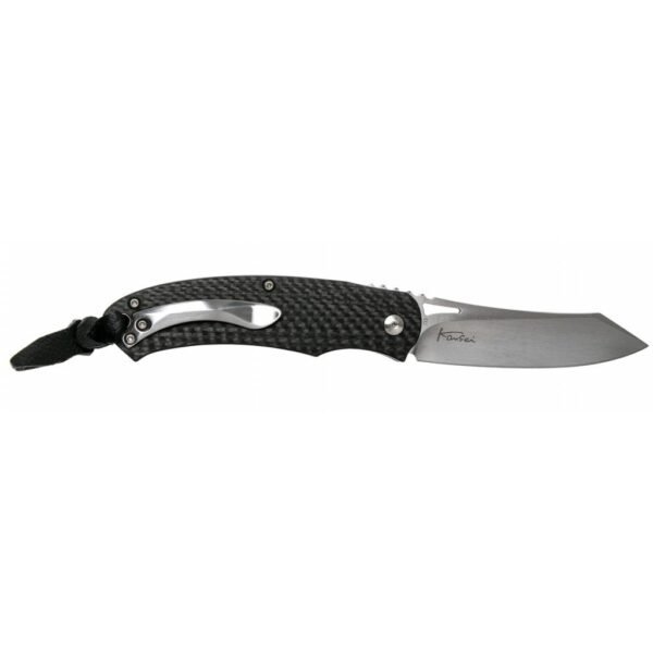 Клинок виконаний більш агресивно і має форму Wharncliffe. В якості матеріалу використовується інструментальна сталь D2 з сатиновою фінішною обробкою і твердістю 56-61 HRC. Довжина клинка не перевищує 80 мм. основною родзинкою дизайну є наявність фронт-фліппера, за допомогою якого можна привести клинок в робоче положення. Фіксація клинка відбувається за рахунок замку типу Liner Lock.