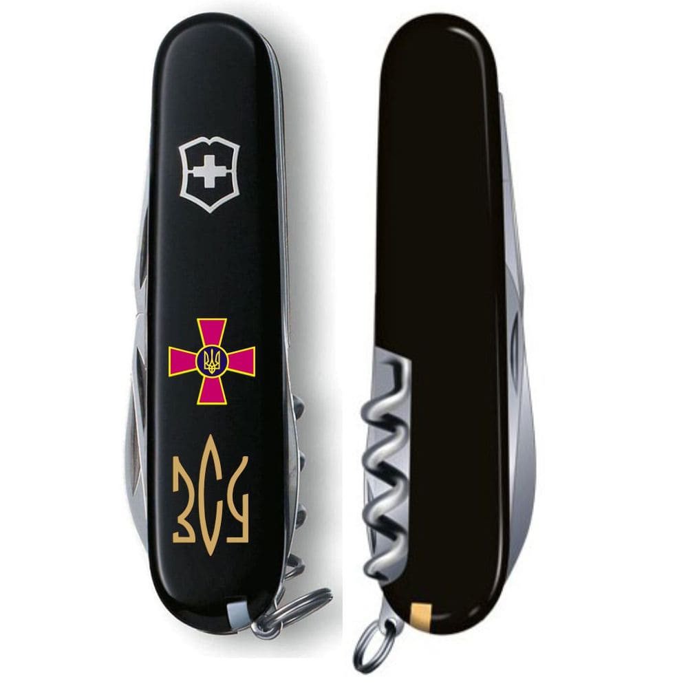 Ніж Climber Army 91мм/14функ/чорний / Емблема ЗСУ + Тризуб ЗСУ золото.