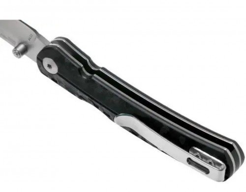Двосторонній: шпенек для великого пальця і фронтальний фіксатор дозволяють відкривати і закривати лезо будь-якою рукою.
