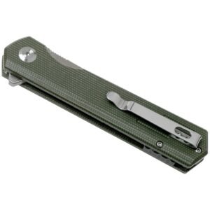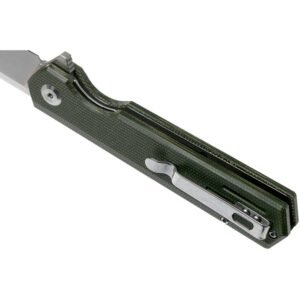 Накладки на рукояті виготовлені з Micarta . Встановлена сталева кишенькова кліпса.
