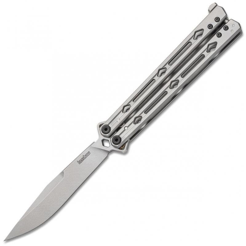 Ніж Lucha від компанії Kershaw відноситься до балісонгам або, інакше – “ножам-метеликам”. Клинок профілю Clip Point виготовлений зі сталі Sandvik 14C28N, яка ефективно протистоїть сколів та інших пошкоджень ріжучої кромки. Вихід клинка плавний і легкий, за рахунок використання системи KVT ball-bearing. Рукоять теж стальова, з фігурними прорізами для зниження ваги, на торці присутня традиційна для балісонгів засувка.