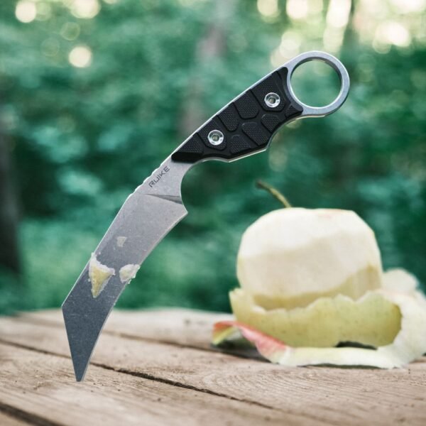Ніж Ruike FS68 має нескладану конструкцію, в якій основну увагу перетягує на себе клинок із нестандартним профілем Bird’s Beak (пташиний дзьоб). Клинки цієї форми зазвичай зустрічаються в кухонних інструментах для чищення овочів, і нечасто знаходять застосування в кишенькових ножах. Проте компанії Ruike вдалося адаптувати цю форму під завдання, з якими стикається користувач на домашній та польовій кухні, а також під час облаштування туристичного табору.