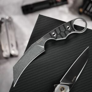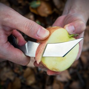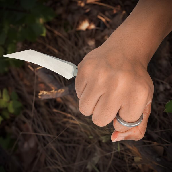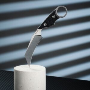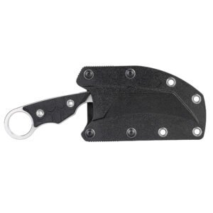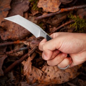Клинок сягає 86 мм у довжину та має вигнуте лезо з прямим заточуванням, яке справляється з різанням всього, що трапляється йому на шляху. Тонкий кінчик особливо зручний у здійсненні акуратних розрізів, чи то тканина, гума або м’ясні харчові продукти На обуху є насічки. Вони виконують роль упору для пальця.