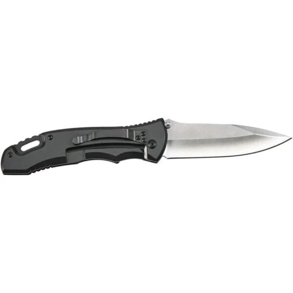 - Для фіксації ножа на кишені, спорядженні або рюкзаку передбачено металевий затискач