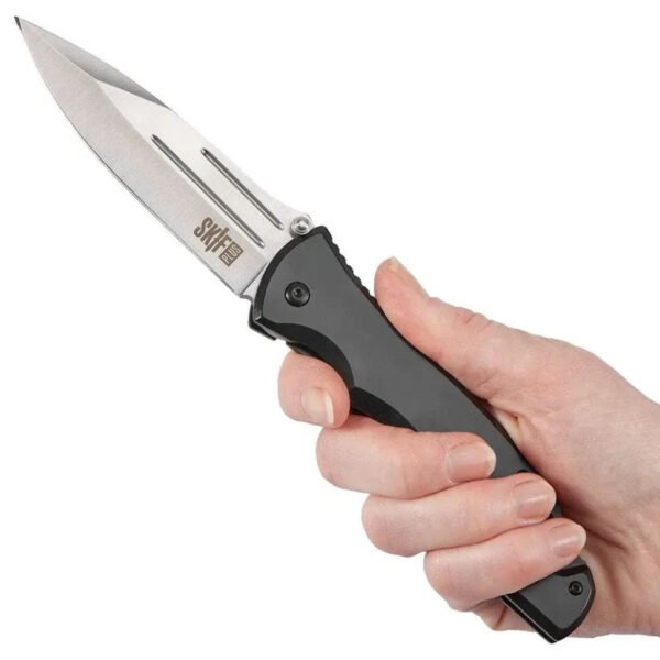 - Конструкція ножа дозволяє відкривати та закривати ніж однією рукою