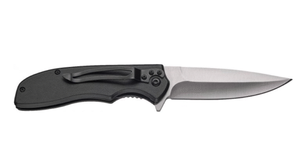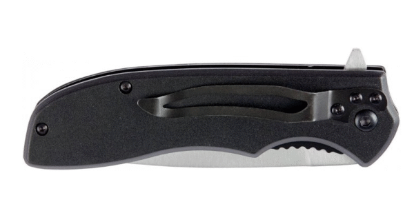 Клинок виконаний у формі Drop point з прямим ребром жорсткості від основи до вістря, а також з вузьким обухом. Клинком такої форми зручно проколювати і розрізати, тобто він ідеальний для легкого EDC-ножа. Сталлю для нього послужила 3Cr13MoV, коррозиестойкая і досить м’яка, що є плюсом при заточуванні. Клинок витягується за допомогою фліппера, який у відкритому стані служить обмежувачем, і фіксується замком Liner Lock.