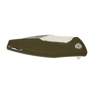 Клинок профілю Clip Point виконаний з недорогої сталі марки 3Cr13, яка відрізняється хорошими показниками корозійної стійкості, а також простотою виправлення різальної кромки. Вилучається клинок за допомогою фліпера і надійно фіксується у робочому положенні сталевою пластиною замка Liner Lock. Ніж обладнаний системою шарикопідшипників, що сприяє легкому та плавному витягуванню клинка. Увігнуті спуски починаються майже з 1/3 від обуха, що у поєднанні з формою клинка та невеликим фальшлезом, забезпечує ножу хороші колючі та різальні якості.