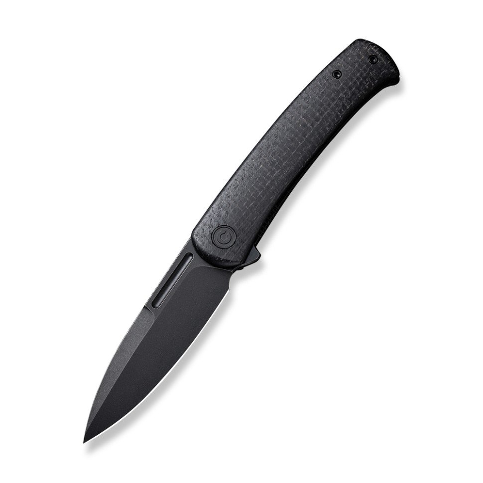 Осьовий гвинт і кліпса виготовлені з нержавіючої сталі та мають чорне покриття в тон карбонового руківʼя. Кліпса є однопозиційною.