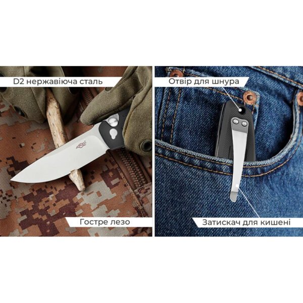 З урахуванням ваги, що дорівнює 116 г, ніж Firebird FH926 зберігає головну перевагу складаних інструментів — зручність у транспортуванні. Ви можете носити модель у місті, брати її на риболовлю, полювання чи в подорож. Достатньо закріпити конструкцію на кишені за допомогою тугої кліпси.
