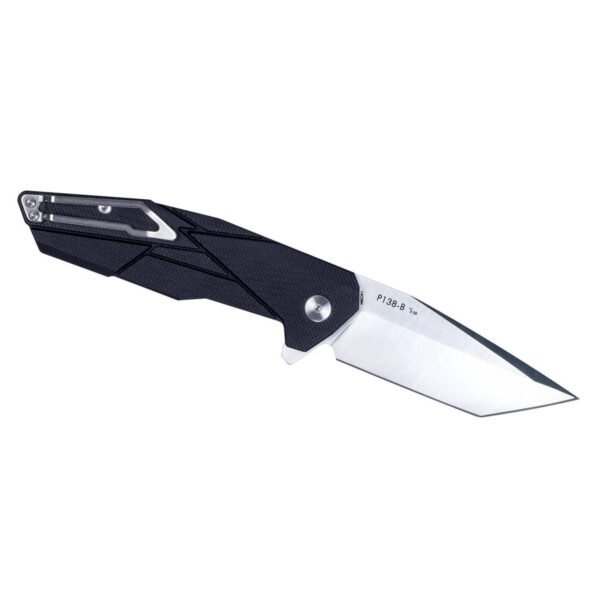 Ruike P138 має кутасту металеву кліпсу, яка до речі, ідеально вписується в дизайн ножа, доповнюючи його. Незважаючи на її невеликі розміри, вона володіє хорошою жорсткістю, що дає змогу закріплювати ніж в будь-якому зручному для вас місці і не турбуватися про те, що він випаде під час руху.