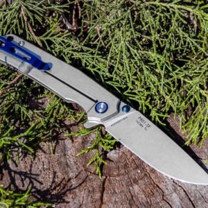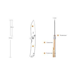 Ruike P801 – практичний EDC-ніж, який стане надійним помічником навіть в похідних умовах. У закритому вигляді його довжина складає всього 11,4 сантиметра, а вага – 120 грамів. Він виглядає як професійний інструмент, не дивлячись на те, що дизайн досить лаконічний. Механізм, що відповідає за закриття і відкриття ножа – Frame Lock.