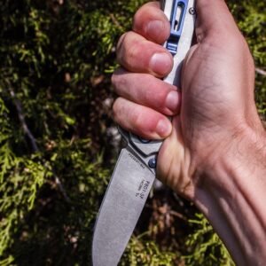 Для клинка була використана загартована нержавіюча сталь Sandvik 14C28N шведського виробництва. Показник твердості – 58-60 HRC, а тому ніж довго не тупиться і може бути заточений до надзвичайної гостроти. Крім того, ріжуча кромка залишається стабільною протягом усього часу використання ножа, вона не пошкоджується навіть при роботі з твердими матеріалами. Також лезо майже не піддається впливу корозії.