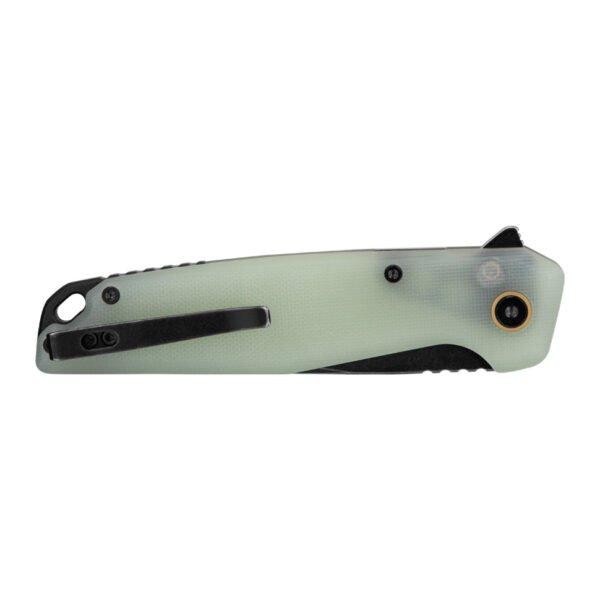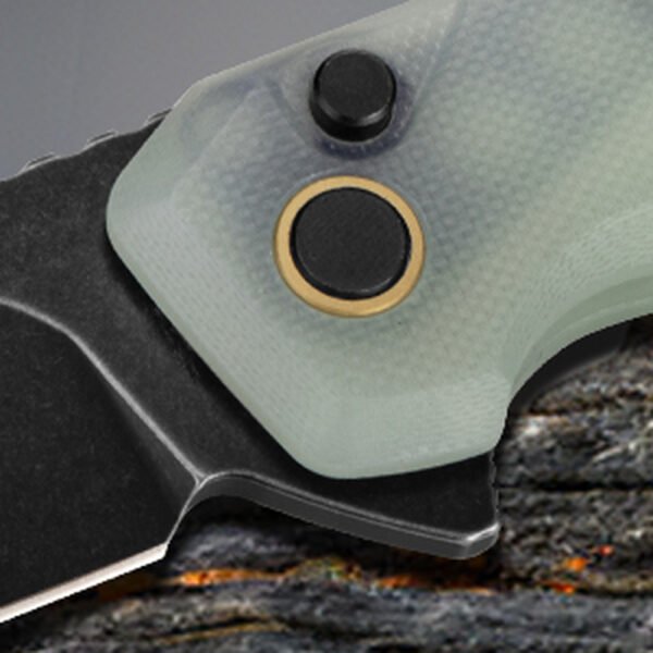 У конструкції передбачений сталевий плавець фліпера, а в осьовому вузлі — кулькові підшипники для швидкого ходу клинка. Також є замок Button lock, що дозволяє відкрити ніж одним рухом. Упор, розташований на обуху завтовшки 3,1 мм, не дає великому пальцю зіслизнути з клинка під час силового різання.
