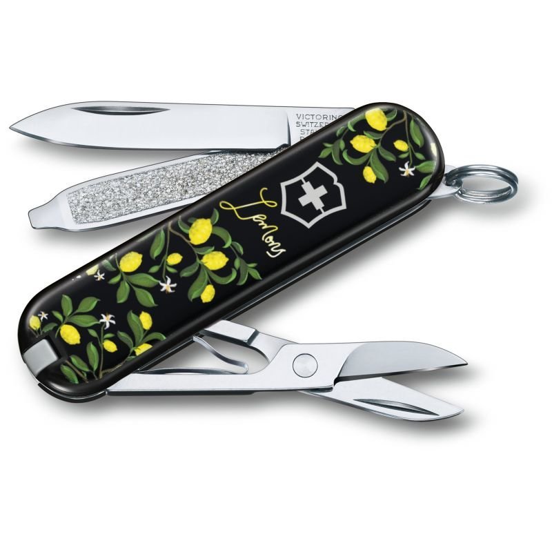 Колекційний швейцарський ніж-брелок CLASSIC LE “When Life Gives You Lemons” 58мм/2 шари/7 функцій/кольорові накладки/ножиці + чохол (Лімітована серія 2019)