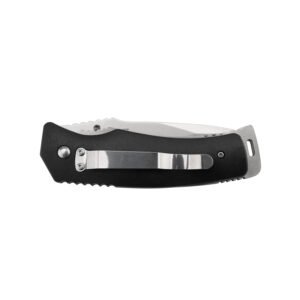 Ручка зручна, ергономічна, і зроблена із застосуванням ABS-пластика. Цей матеріал як не можна краще підходить для виготовлення подібних ножів туриста. Він стійкий і надійний, витримує великий діапазон температур, абсолютно нетоксичний. Тому і ніж з таким матеріалом буде вірним супутником власника в похідних умовах. Витримуючи різні навантаження ззовні. Поверхня ручки зроблена таким чином, що ніж не вислизне з долоні, навіть якщо руки мокрі, масні, забруднені. Що гарантує безпечну роботу. Ніж відмінно збалансований і комфортний для інтенсивного застосування. У торці рукояті передбачили отвір для темляка, кільця або іншого кріплення.
