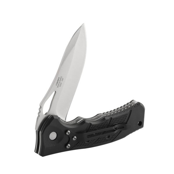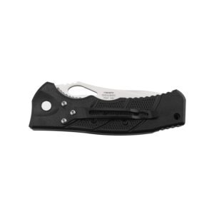 Ножовий замок Liner Lock допомагає фіксувати клинок. Це дуже надійний і добре зарекомендував себе ножовий механізм. Забезпечує безпечне застосування ножа. Ручка моделі зроблена з міцного ABS-пластика, який часто використовують як легкої, так і важкої, промисловості. Зовнішні панелі якісно закріплені на сталевому остові металевими заклепками, у них текстуроване покриття і ергономічний дизайн. Зручна робота, інструмент не вислизне з мокрих рук користувача.