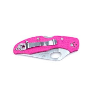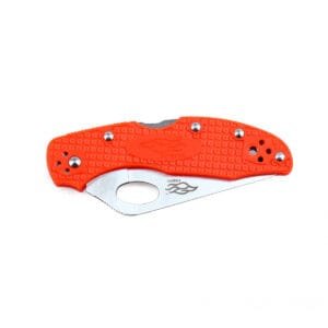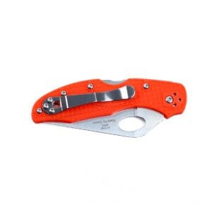 Що стосується рукоятки, то вона може бути оранжевою, чорної, рожевий або блакитний. Матеріалом для яскравих накладок послужив наповнений скловолокном нейлон. Це дуже міцний і стійкий до різного роду впливів матеріал, який прослужить багато років. Щоб ніж не прослизав у долоні, накладки зроблені текстурними. Щоб закріпити ніж у кишені і виключити його випадіння під час перенесення, рекомендується використовувати притискну кліпсу. Її можна встановити в тому положенні, яке здасться найбільш зручним (все можливе 4 варіанти).