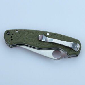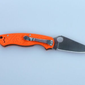 Рукоятка виготовлена з якісного композитного пластику, який складається з скловолокна і епоксидних смол. Цей матеріал наділений великою довговічністю, здатністю протистояти корозії і механічних деформацій. Для вибору доступні три варіанти — з ручкою чорного, зеленого або оранжевого кольору. На її поверхню нанесений фактурний малюнок, який сприяє тому, щоб ніж не ковзав навіть у вологих долонях.Крім того, на рукоятці зроблено невелике наскрізний отвір для закріплення страхувального ремінця на руку і розташована металева кліпса для фіксації ножа в кишені.